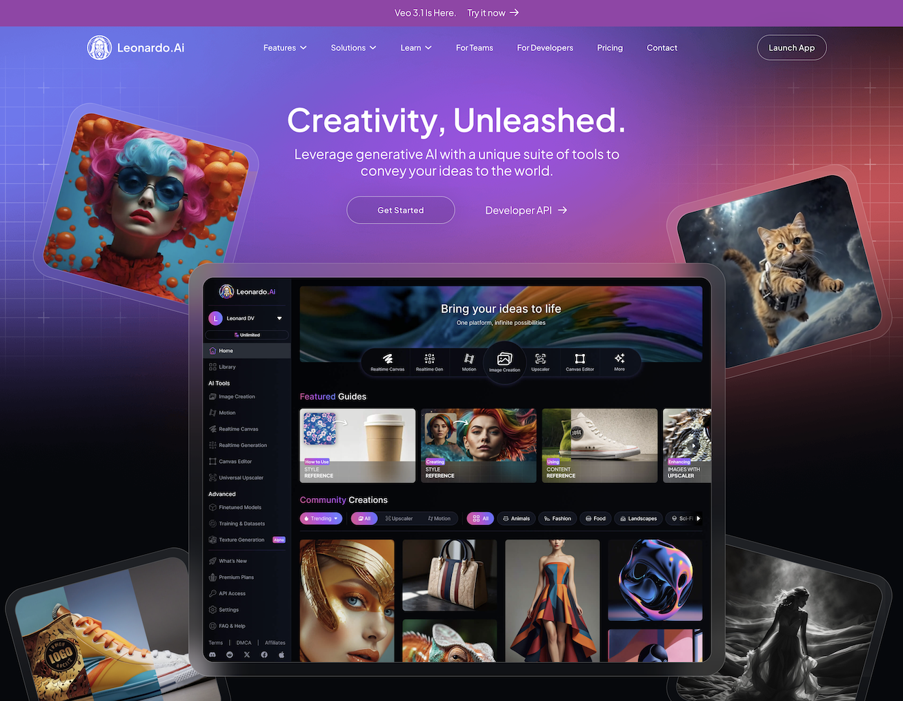 Leonardo AI 主打「角色設計」與「商品生成」功能,是許多設計師與電商主愛用的平台。