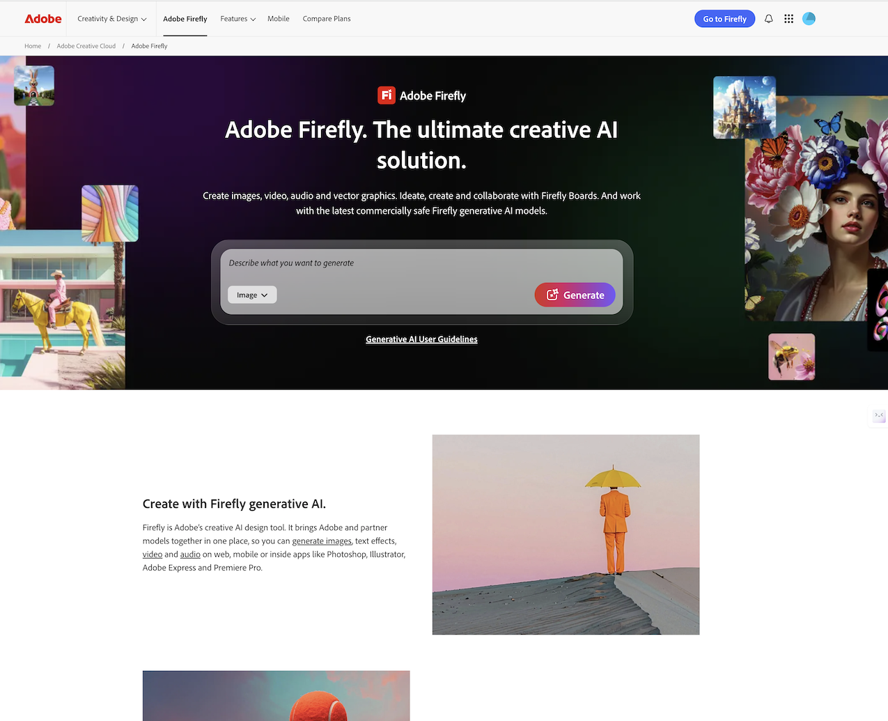 Adobe Firefly 是 Adobe 家族推出的 AI 創作工具,專為專業創作者、品牌設計師、影像後製人員設計。生成結果真實自然,是品牌與設計師的高端選擇。